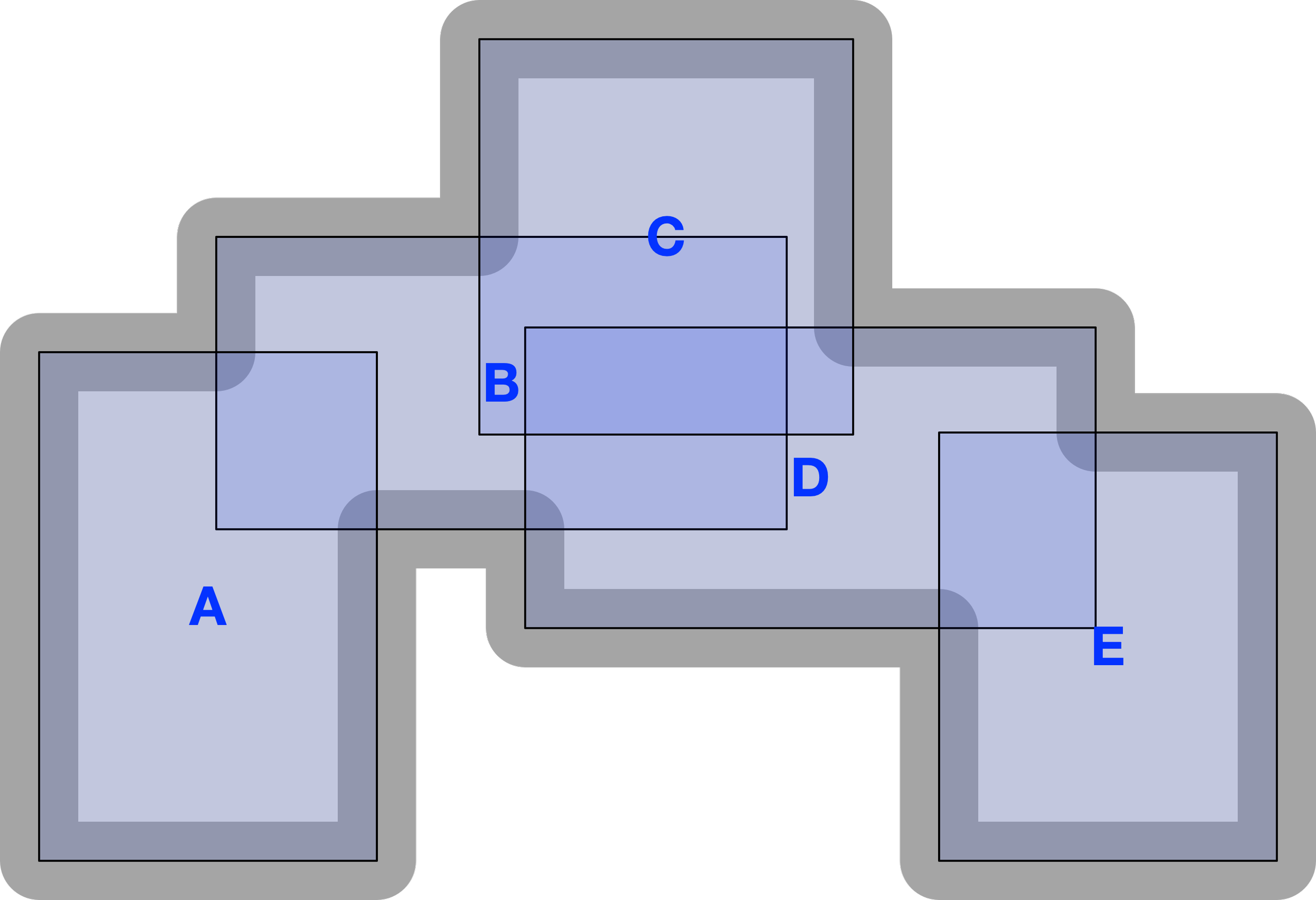 In DCM, building follows a collage metaphor. Smaller elements are projected onto a larger construction, with some parts sticking out and others overlapping.