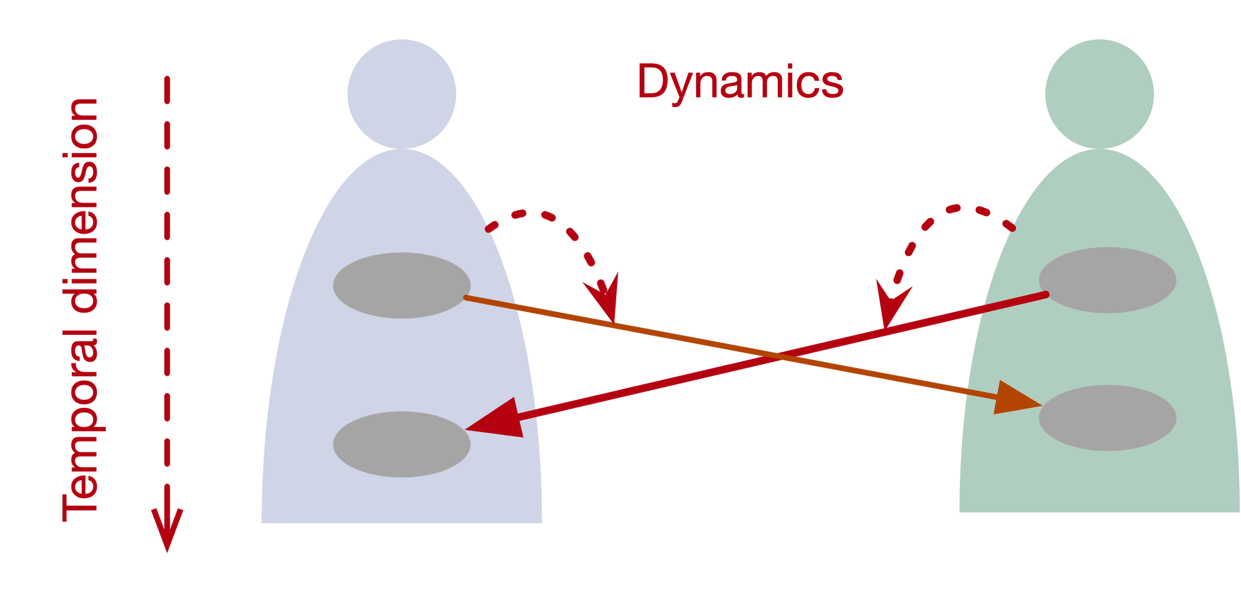 For example, an EXCHANGE frame, understood as a process (or event), embeds two instances of a MOVE process (or event). In turn, each MOVE process embeds both a RELEASE and a CAPTURE. The temporal dimension and dynamics go hand in hand; these two are tightly linked.
